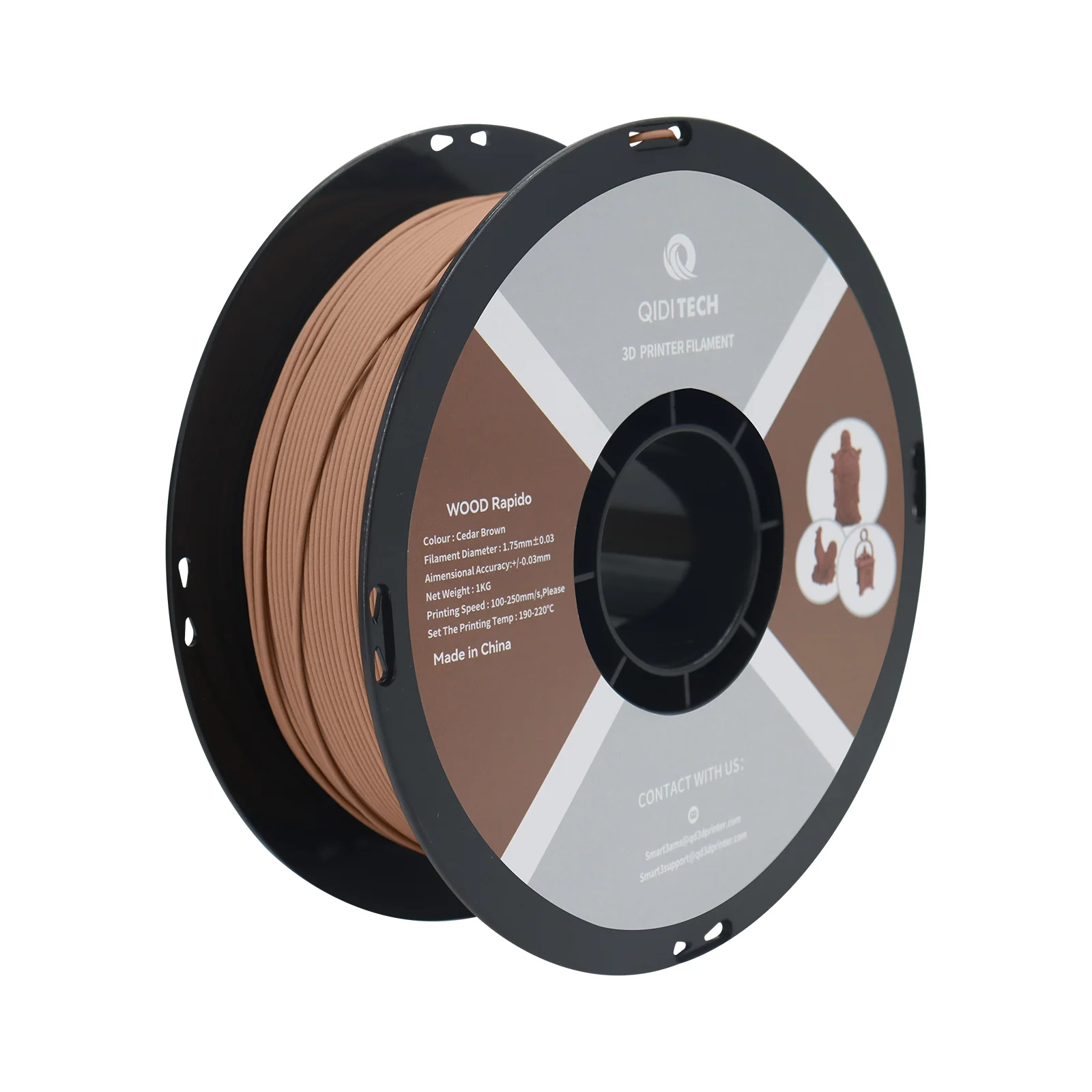 QIDI PLA Wood filament 1.75mm. Works perfectly with most FDM 3Dprinters on the market.